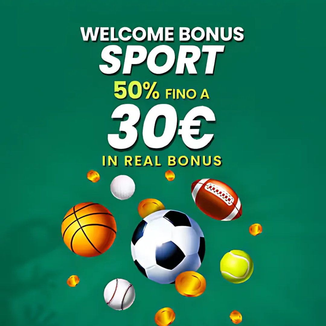 - Riceverai un bonus del 50% fino a 30€, sull’importo della tua prima giocata refertata a prescindere dal suo esito (vincente o perdente)